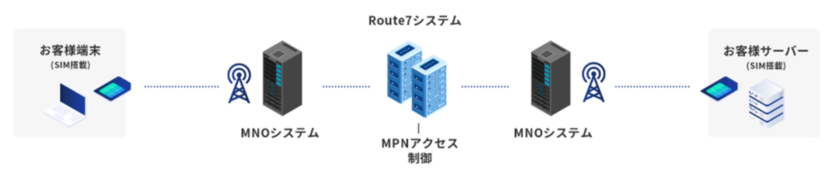 MPNはSIMからSIMの間はMNO(通信キャリア)のネットワークとRoute7のMVNOシステムだけで構成されており、