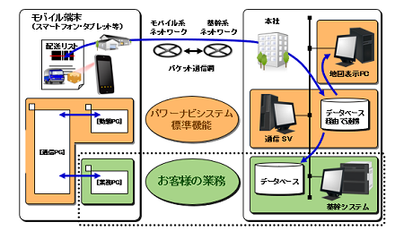 私達のサービスは、主にスマートフォンを使った動態管理、つまりトラックの位置情報などをセンター側で把握できるシステムを提供しています。スマートフォンがない頃にハンディ端末でスタートして、携帯電話、そして現在のシステムになりました。